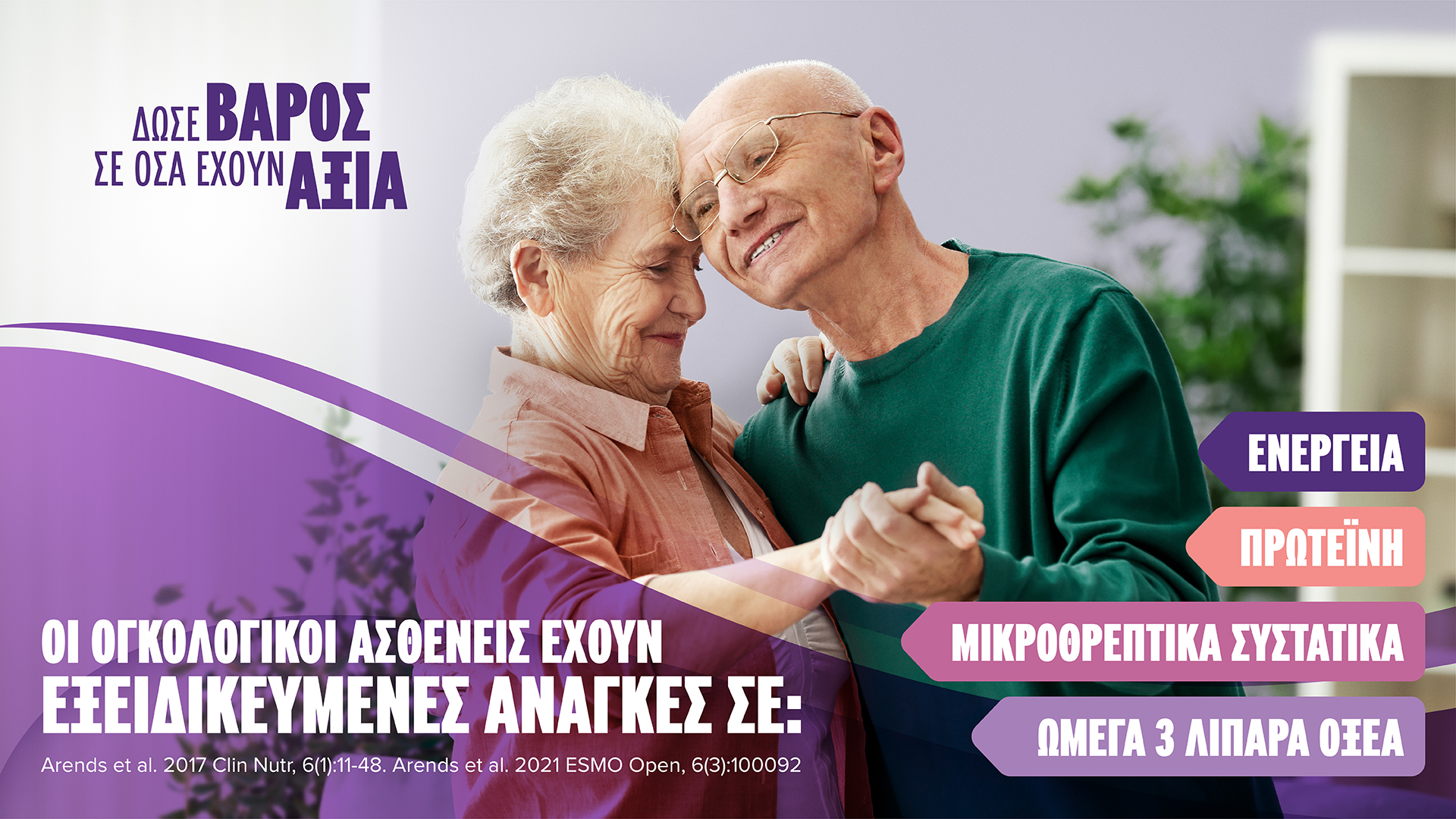 Όταν η διατροφή δεν επαρκεί, δώσε βάρος σε όσα έχουν αξία! Μίλησε με τον ιατρό, το διαιτολόγο ή το φαρμακοποιό σου για το ρόλο των Σκευασμάτων Ειδικής Διατροφής στην διαχείριση της δυσθρεψίας, με στόχο τη βέλτιστη ανάρρωση και την καλύτερη δυνατή έκβαση της θεραπείας.