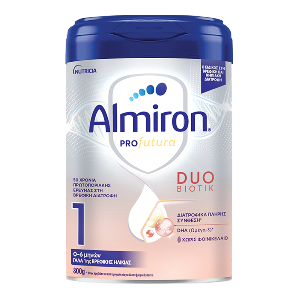 Σε μια τόσο σημαντική περίοδο, όπως είναι το πρώτο εξάμηνο της ζωής, κατά την οποία το μωρό τρέφεται αποκλειστικά με γάλα, το Almiron Profutura 1 υποστηρίζει τις διατροφικές ανάγκες του μωρού.