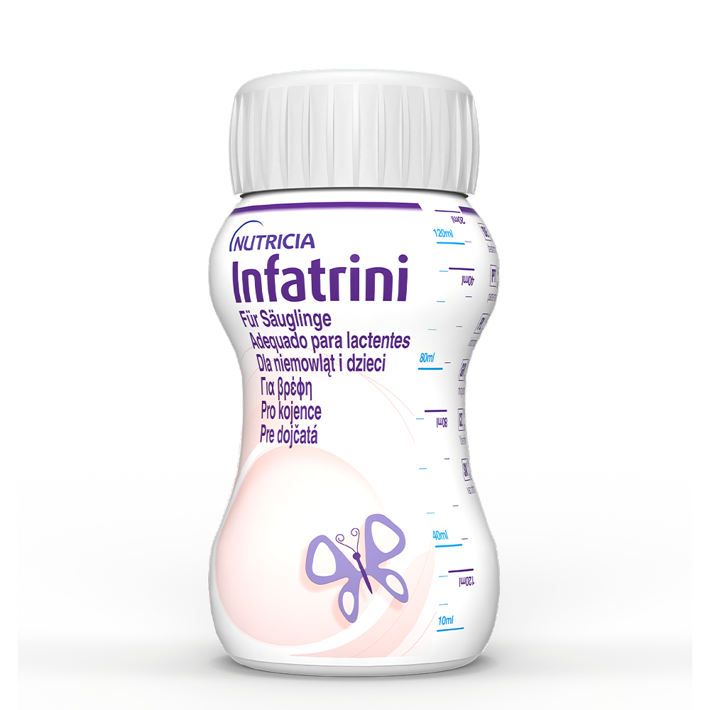 Το Infatrini είναι τρόφιμο για ειδικούς ιατρικούς σκοπούς. Βρεφική φόρμουλα σε υγρή μορφή όγκου 125ml, έτοιμo προς χρήση, με υψηλή περιεκτικότητα σε ενέργεια (1kcal/ml) και πρωτεΐνες.