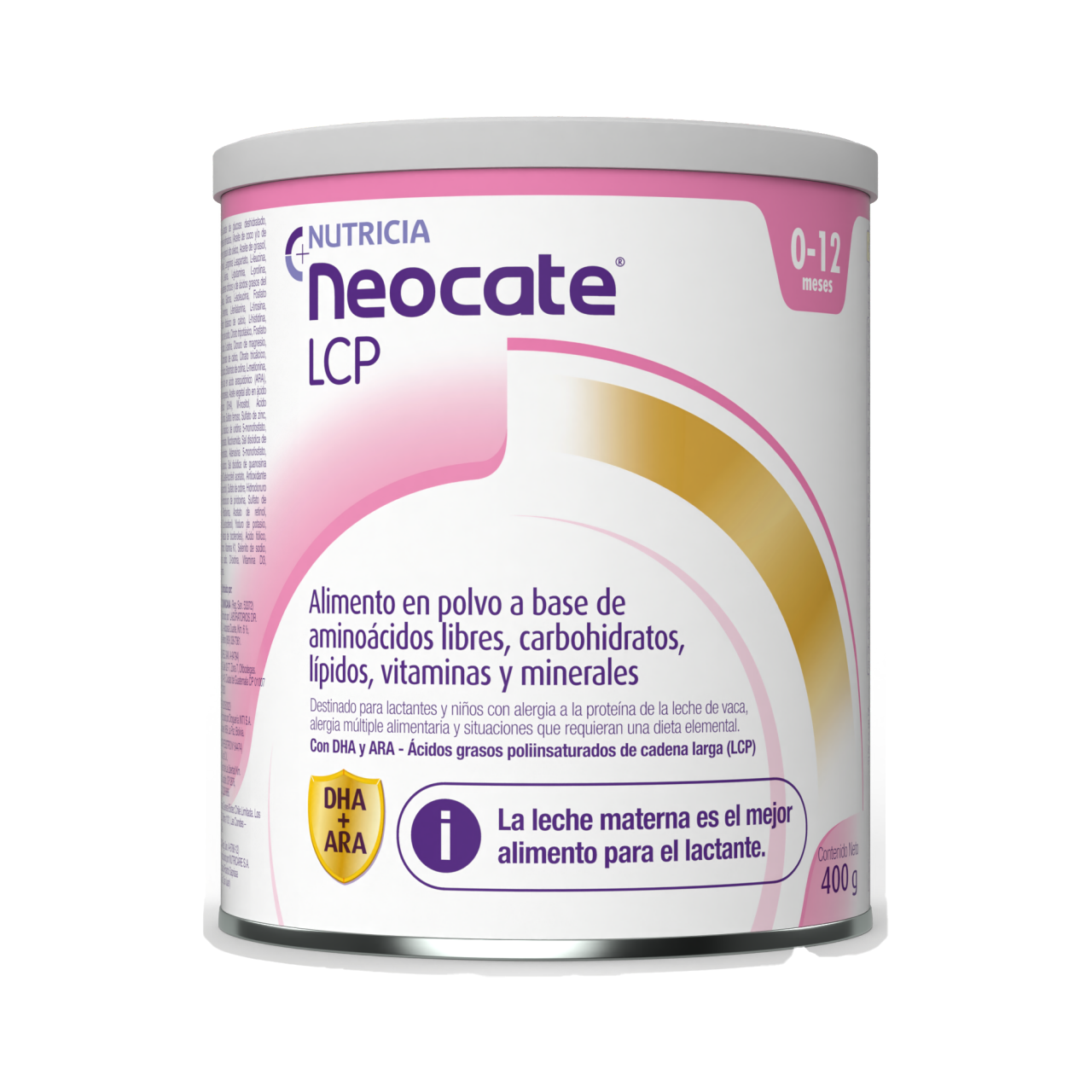 Neocate LCP es una fórmula para lactantes con necesidades especiales de nutrición, a base de aminoácidos libres (FAA), para el manejo nutricional de la alergia a la proteína de la leche de vaca (APLV), alergia alimentaria múltiple y otras situaciones que requieran una dieta elemental.