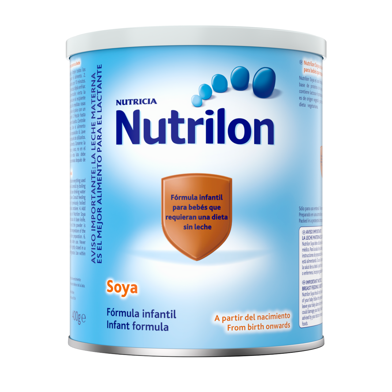 Nutrilon Soya es una fórmula infantil completa en polvo a base de proteína de soya para bebés que requieren una dieta sin leche. No contiene lactosa ni proteína de leche de vaca. Nutrilon Soya es de origen vegetal y por tanto también es apta para una dieta vegetariana.