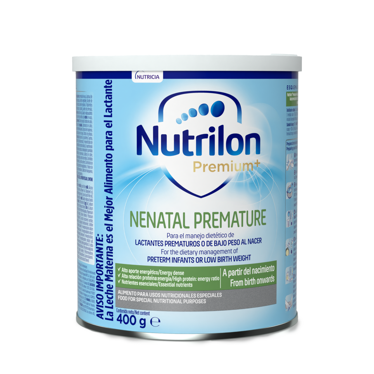Alimento para usos nutricionales especiales para el manejo dietético de lactantes prematuros y/o de bajo peso al nacer.