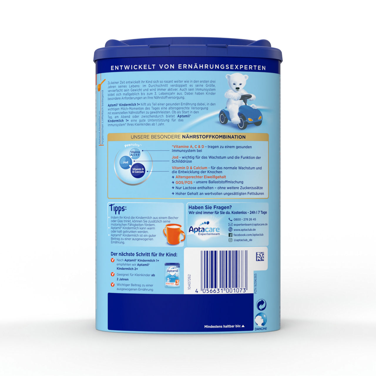 Aptamil 1+, as part of a varied diet, helps provide essential nutrients appropriate to his age at key times of the day.