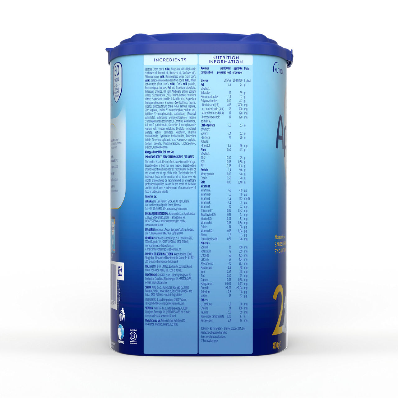 *vsebuje DHA (kot zahteva zakonodaja za vse nadaljevalne formule za dojenčke)