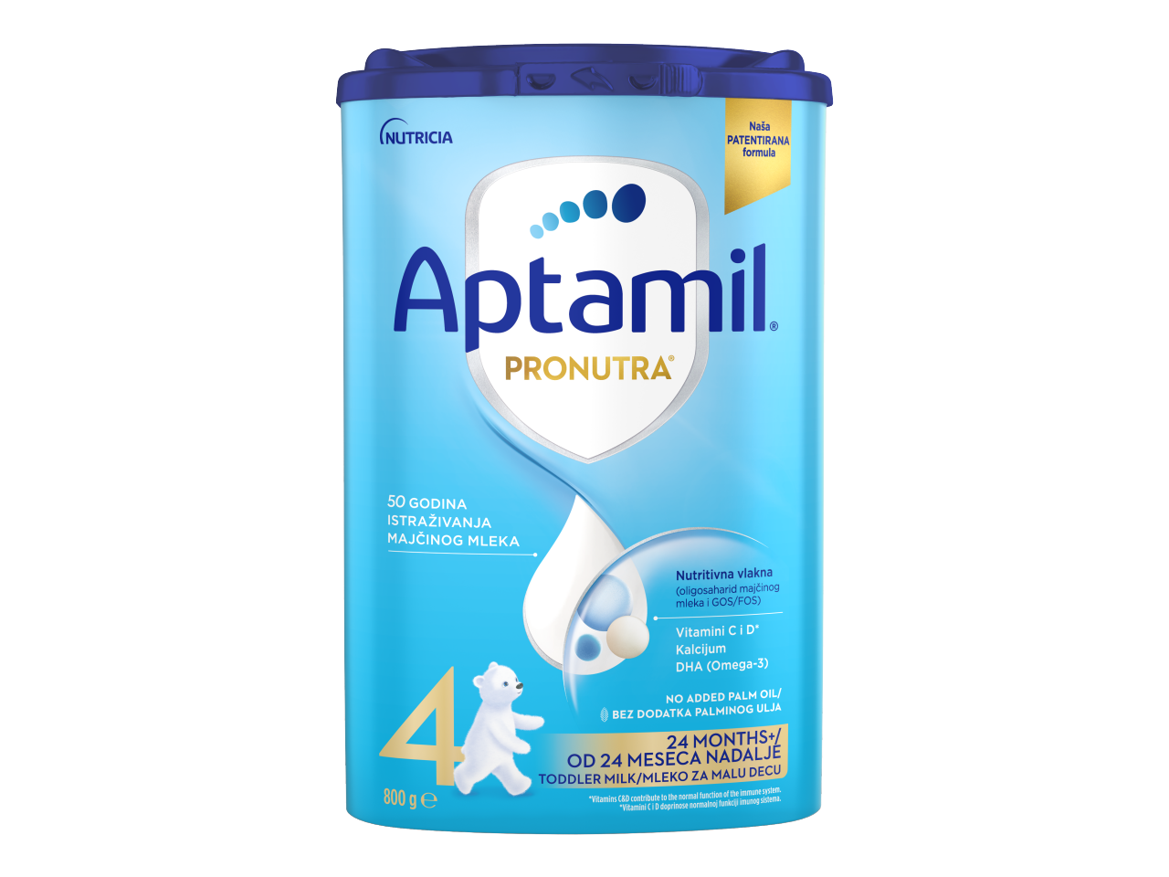 Aptamil 4 Pronutra® predstavlja patentiranu kombinaciju odabranih sastojaka i jedinstvenog procesa proizvodnje. Aptamil 4 Pronutra® kombinuje našu proverenu prebiotsku mešavinu scGOS/lcFOS (9:1) sa jedinstvenim procesom dobijanja HMO 3'-GL i postbiotika, omogućavajući funkcionalne benefite imunog sistema preko gastrointestinalnog trakta.